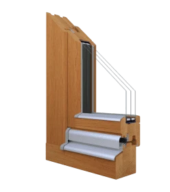 Die Holztüren im DJ 68-System sind, so wie die Fenster, aus dreifach verleimtem Holz gefertigt, was ein Verziehen und eine Verformung der Struktur verhindert. Außerdem ist das Holz dank der Anwendung spezieller Farbbeschichtungen auf Basis wasserlöslicher Lacke vor schädlichen äußeren Einflüssen geschützt.